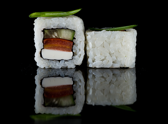Ролл с помидором. огурцом, зеленым луком и сливочным сыром.