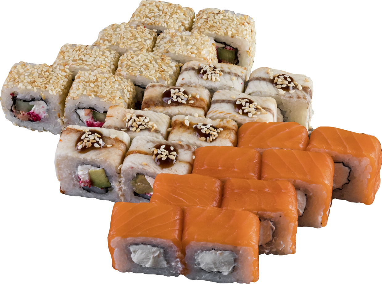 Набор из трех роллов - ролл "Филадельфия", ролл "Дракон", ролл "Аляска".